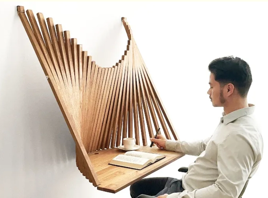 Un magnifique bureau mural qui se plie en œuvre d’art