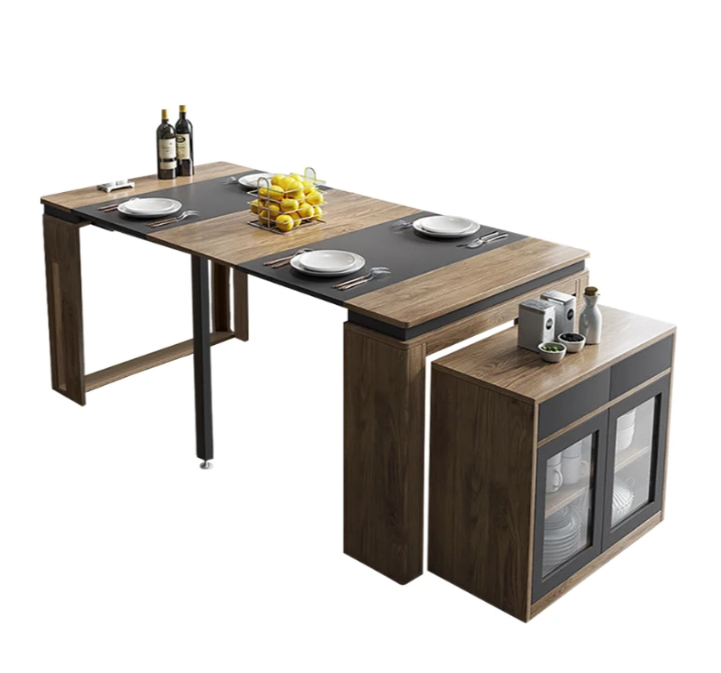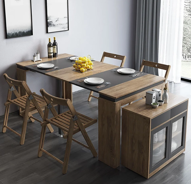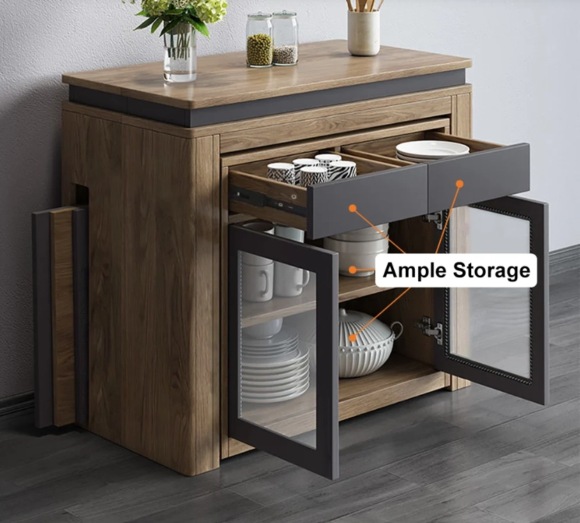 - Table à manger avec rangement : le buffet intégré offre un grand espace de rangement.