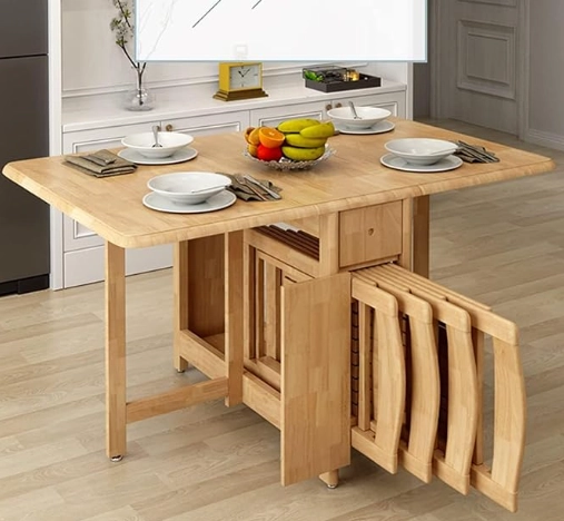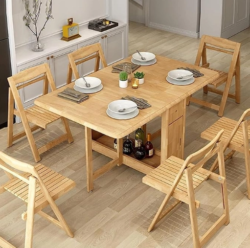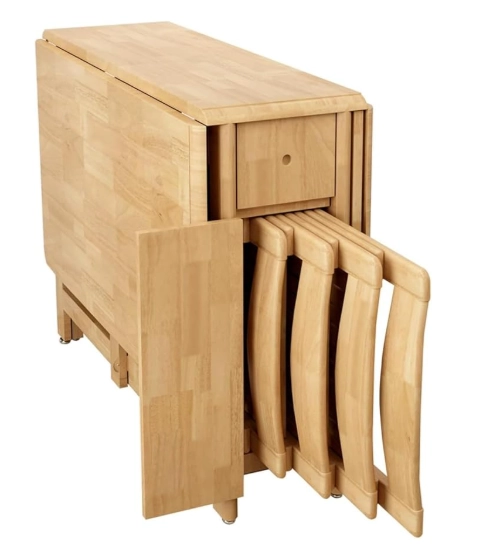 Apportez élégance et praticité à votre intérieur avec cet ensemble en bois massif. Conçue pour optimiser l’espace, cette table pliante s’adapte à tous vos besoins, du repas en famille aux moments de convivialité entre amis. Les quatre chaises assorties, également pliantes, se rangent facilement après usage pour libérer l’espace. Robuste, chaleureuse et fonctionnelle, cette table est idéale pour les petits espaces comme pour les grandes occasions.