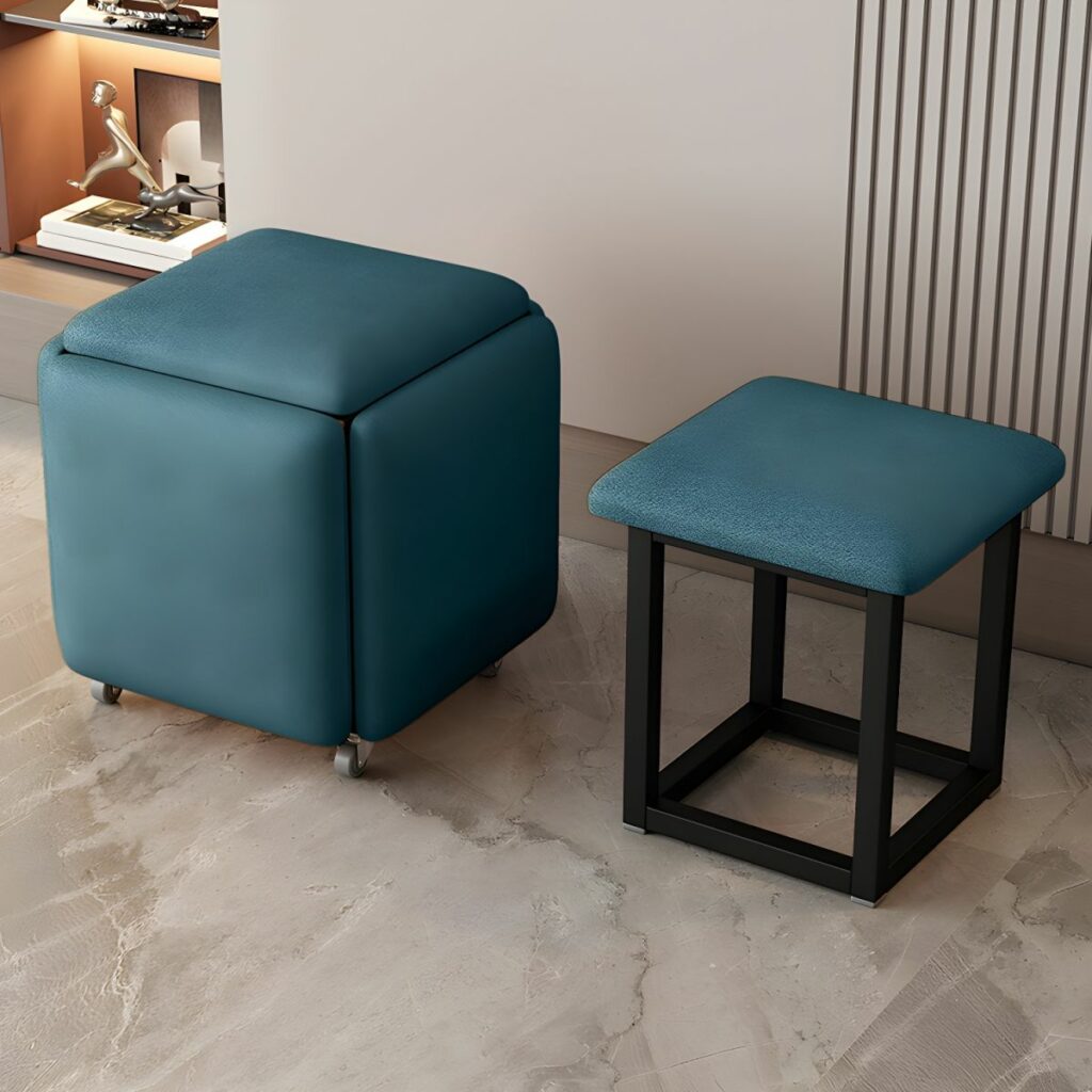 Pouf carré moderne avec cadre en métal et roulettes pour une utilisation polyvalente